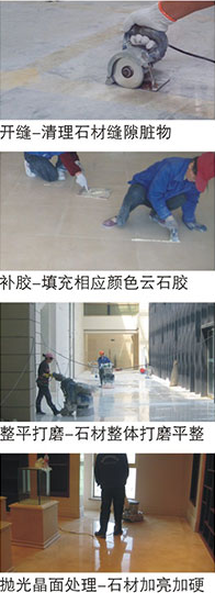 7、剪口整平對于剛剛裝修的石材有高低不平、剪口裂縫,我們將用多次打磨,采用粘接力強的德國石材填補裂進行晶面處理,從而使整體表面平整光滑不裂縫。